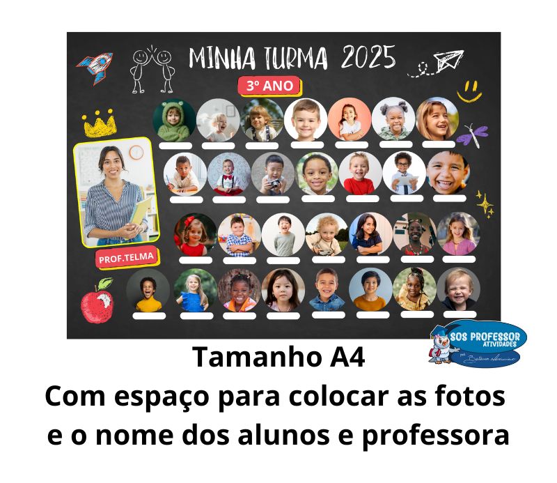 O Arquivo Editável no Canva – Foto da Turma 2025 é o recurso ideal para fechar o ano letivo com carinho, organização e profissionalismo. Com layout moderno, espaço para foto da professora e dos alunos, ícones lúdicos e área para nomes, ele permite criar um painel visual encantador que valoriza cada criança da sua turma.