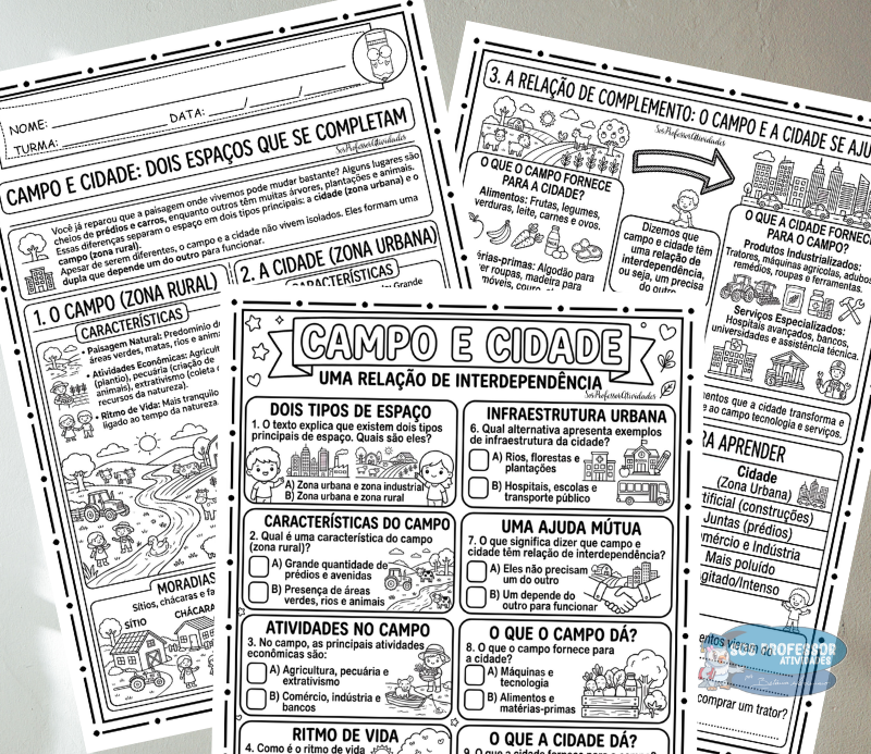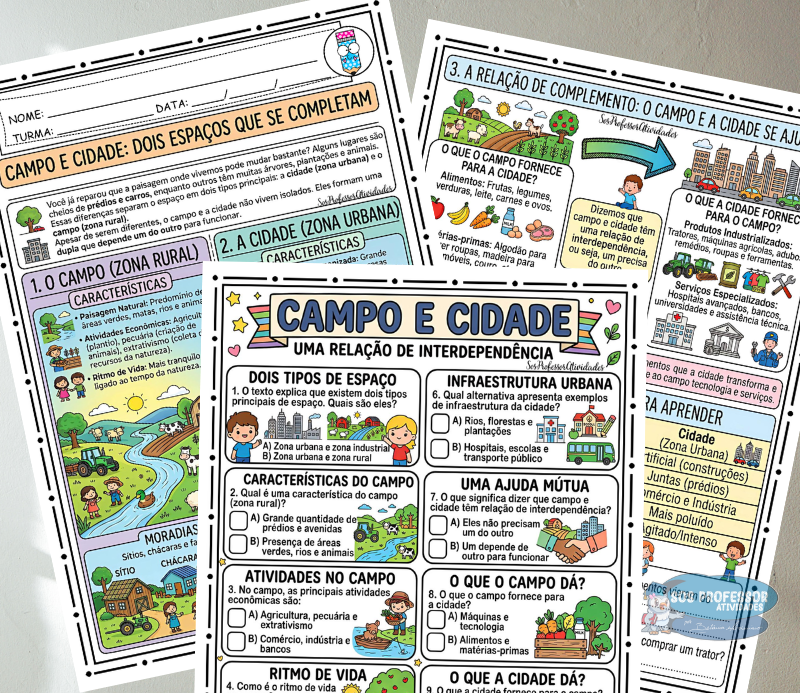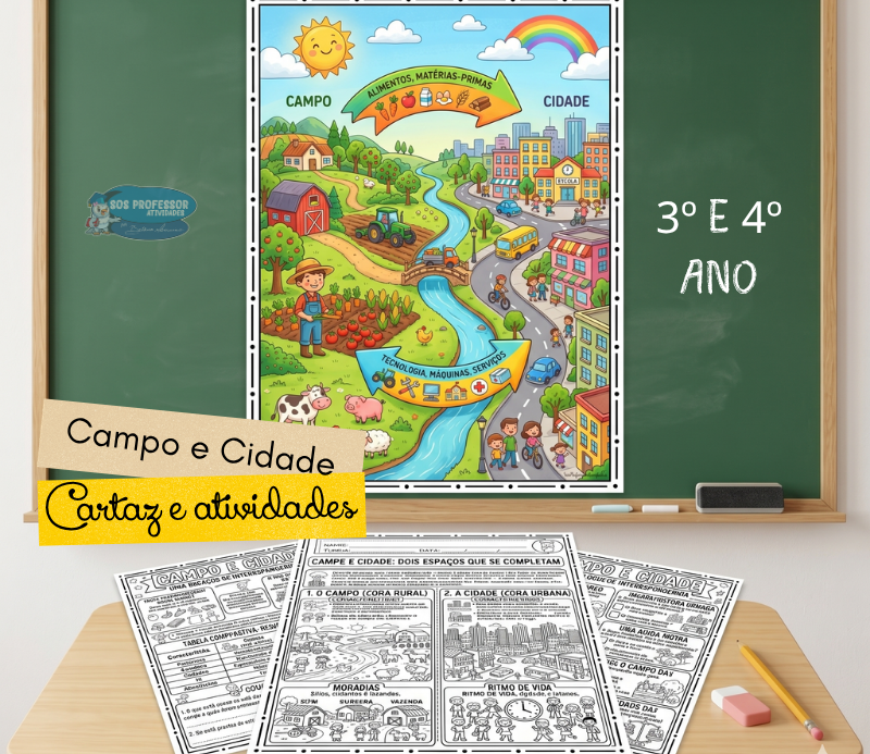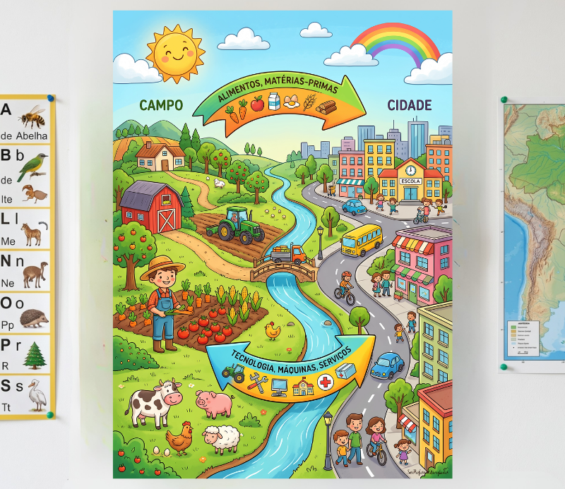 Material completo e pronto para uso para trabalhar a relação entre campo e cidade de forma clara, visual e interdisciplinar.