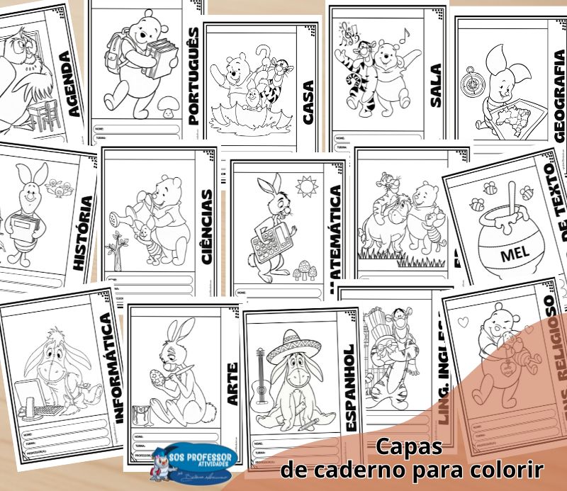 As Capas de Caderno para Colorir – Ursinho Pooh unem organização, ludicidade e intencionalidade pedagógica, tornando cada disciplina mais atrativa e significativa para as crianças.