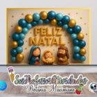 Este material exclusivo traz uma arte vibrante e acolhedora que celebra o verdadeiro espírito do Natal, com o presépio central e balões coloridos em efeito 3D, perfeitos para criar um painel de destaque.