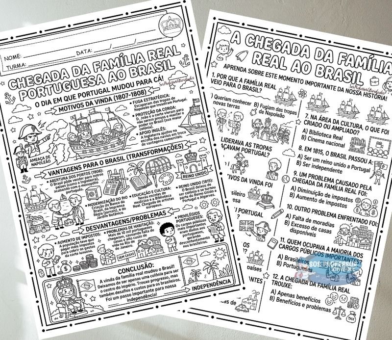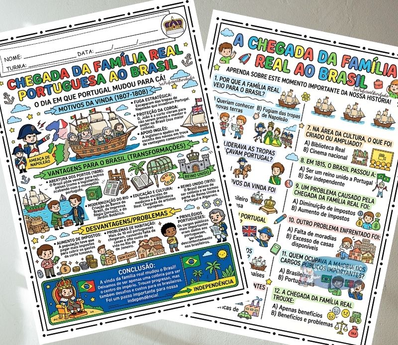 Este material completo sobre A Chegada da Família Real ao Brasil (1808) foi criado especialmente para professores que desejam trabalhar o conteúdo de forma clara, dinâmica e alinhada à BNCC.
