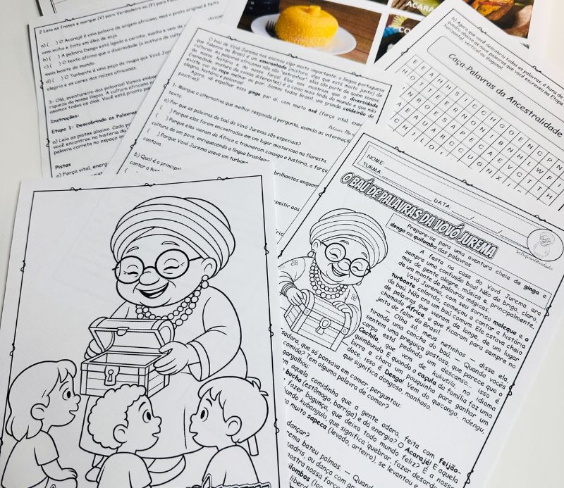 - Conteúdo Poderoso: Apresente a Consciência Negra e a Ancestralidade de forma respeitosa e apaixonante com o texto original “O Baú de Palavras da Vovó Jurema”.